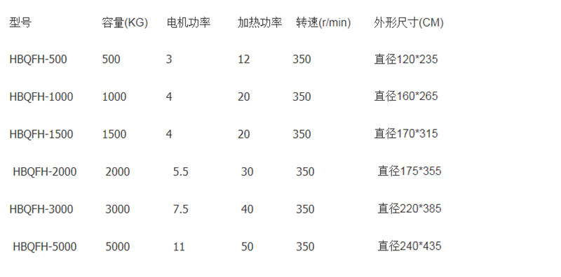 500kg攪拌型干燥機(jī)的技術(shù)參數(shù):